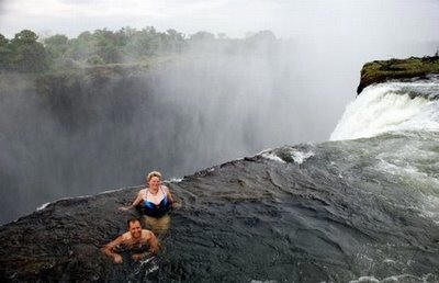 Localizada em Zimbabwe, na Africa, a Piscina do Diabo é uma piscina natural em Victoria Falls (cataratas) onde se tem uma vista espetacular.