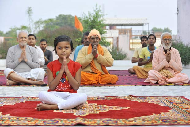 A menina indiana Shruti Pandey, de seis anos, é considerada a professora de ioga mais jovem do mundo, segundo a agência "Barcroft Media".